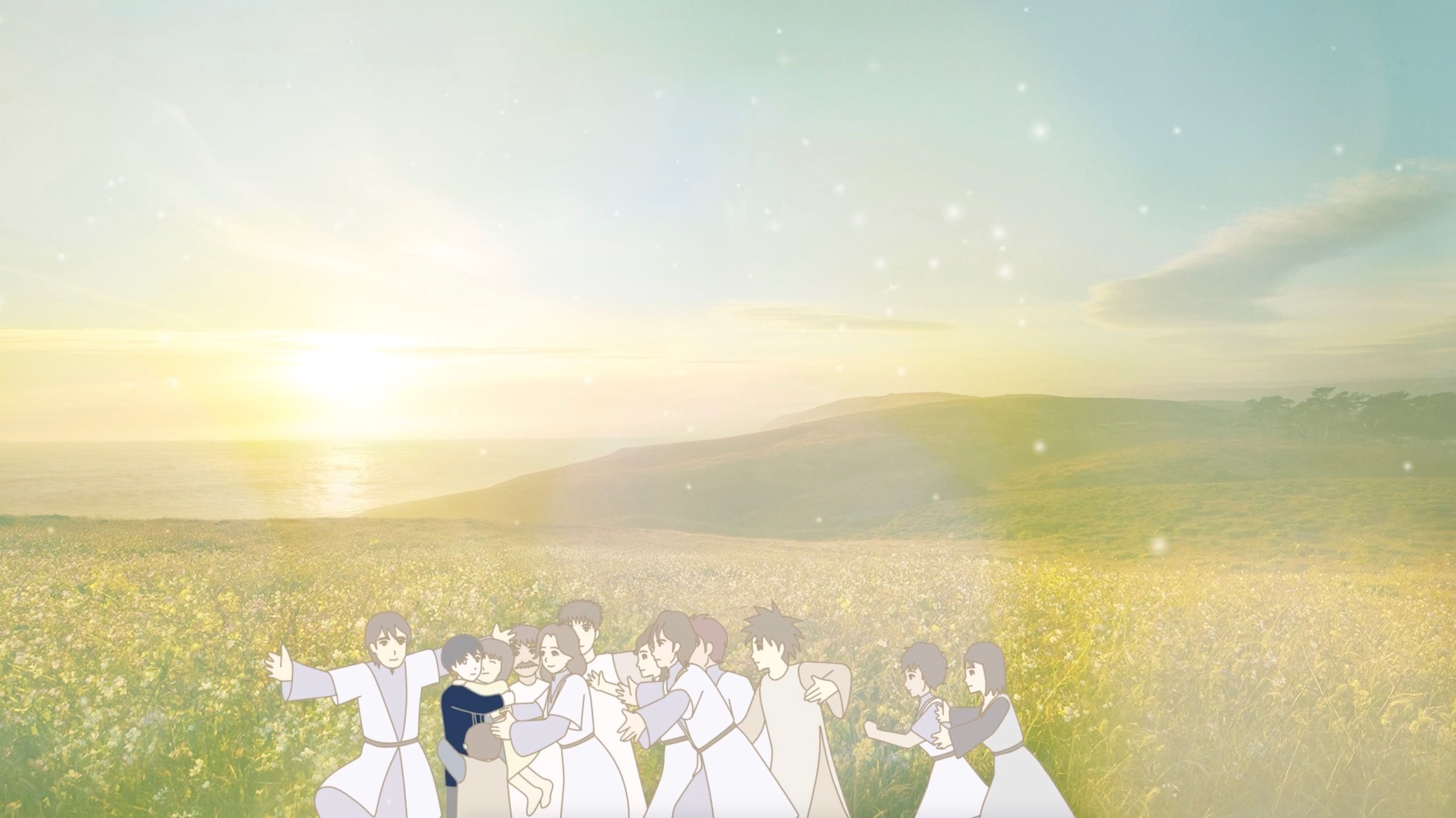 お別れのうたげ 僕は、ティナたちが、村のみんなが開いてくれる、お別れのうたげの会場の前に、立ち尽くしていた。 なぜか、入ることが怖かった…。愛でいっぱいなことが、なぜか怖かった…そして、その時は、それがなぜか、わからなかった…。父のこと、僕の時代のこと……。長 :「たけるくん…よく来た…中へどうぞ…。今宵は、君が主役だ……。」